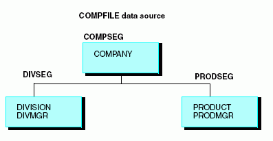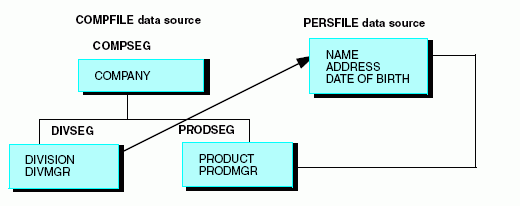 FILENAME = COMPFILE, SUFFIX = FOC, $ SEGNAME = COMPSEG, SEGTYPE = S1, $ FIELD = COMPANY, ALIAS = CPY, FORMAT = A40, $ SEGNAME = DIVSEG, PARENT = COMPSEG, SEGTYPE = S1, $ FIELD = DIVISION, ALIAS = DV, FORMAT = A20, $ FIELD = DIVMGR, ALIAS = NAME, FORMAT = A12, $ SEGNAME = ADSEG, PARENT = DIVSEG, SEGTYPE = KU, CRSEGNAME = IDSEG, CRKEY = DIVMGR, CRFILE = PERSFILE, FIELD = NAME, ALIAS = FNAME, FORMAT = A12, INDEX = I,$ FIELD = DADDRESS, ALIAS = ADDRESS, FORMAT = A24, $ FIELD = DDOB, ALIAS = DOB, FORMAT = YMD, $ SEGNAME = PRODSEG, PARENT = COMPSEG, SEGTYPE = S1, $ FIELD = PRODUCT, ALIAS = PDT, FORMAT = A8, $ FIELD = PRODMGR, ALIAS = NAME, FORMAT = A12, $ SEGNAME = BDSEG, PARENT = PRODSEG, SEGTYPE = KU, CRSEGNAME = IDSEG, CRKEY = PRODMGR, CRFILE = PERSFILE, FIELD = NAME, ALIAS = FNAME, FORMAT = A12, INDEX = I,$ FIELD = PADDRESS, ALIAS = ADDRESS, FORMAT = A24, $ FIELD = PDOB, ALIAS = DOB, FORMAT = YMD, $