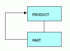 In rare cases, a data source may cross-reference itself. Consider the case of a data source of products, each with a list of parts that compose the product, where a part may itself be a product and have subparts. Schematically, this would appear as: