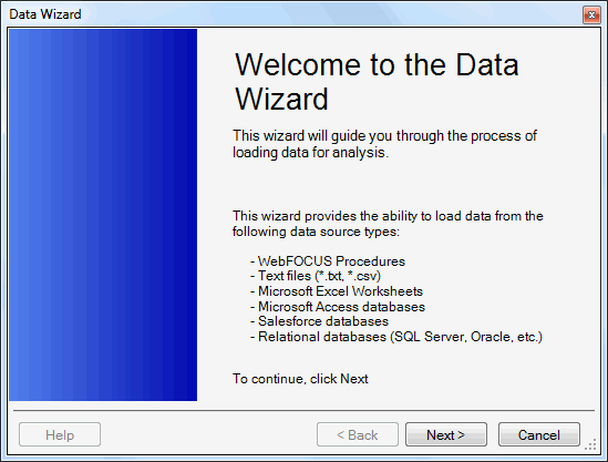 The Data Wizard opens, as shown in the following image.