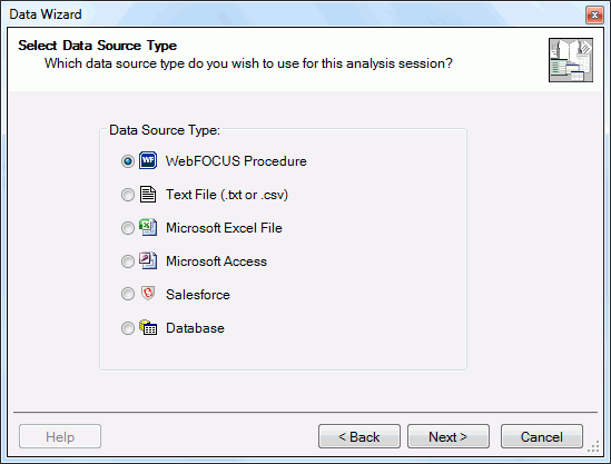 The Select Data Source Type dialog box opens, as shown in the following image.